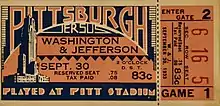 - "Pitt-W. & J. Game in Detail". Pittsburgh Sun-Telegraph. Pittsburgh, Pennsylvania. October 1, 1933. p. Part 2-2. Retrieved January 21, 2022 – via Newspapers.com.