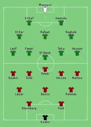 Hungary scored twice in 31 minutes. Rather than being disheartened, Egypt showed a positive attitude and leveled with two goals from Abdulrahman Fawzi. In the second half, Hungary played better and dictated the tempo, scoring two more goals and deserving to reach the quarter-finals.[2]