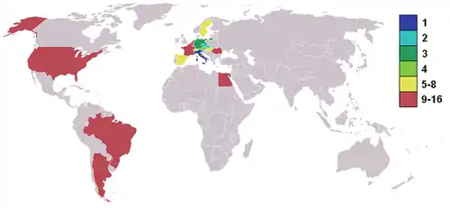 | Mandatory Palestine | 1–4 | |