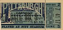 - "Pitt Cuts Ticket Prices For Kids". The Pittsburgh press. September 23, 1934. p. Sports 3. Retrieved February 17, 2022 – via Newspapers.com.