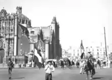 The 1935 Revolution Day Zócalo Battle was a violent conflict that broke out during the Revolution Day festival of 1935 at the Zócalo between members of the Revolutionary Mexicanist Action (Spanish: Acción Revolucionaria Mexicanista) and multiple organizations associated with the Mexican Communist Party. Members of the Revolutionary Mexicanist Action parading through the square were met individuals associated with the Mexican Communist Party with the latter antagonizing the former. The brawl lasted about an hour and resulted in 46 to 50 injuries and 3 casualties.[1][2][3][4] Among the wounded was Nicolás Rodríguez Carrasco, leader of the Revolutionary Mexicanist Action.[3][5]