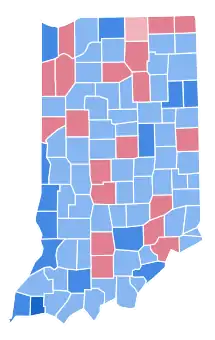 Indiana was won by incumbent President Franklin D. Roosevelt (D–New York), running with Vice President John Nance Garner of Texas, with 56.63% of the popular vote, against Governor Alf Landon (R–Kansas), running with businessman Frank Knox of Illinois, with 41.89% of the popular vote.[3][4] As of the 2020 presidential election, this is the last election in which Boone County, Rush County, Union County and Wayne County voted for a Democratic presidential candidate.[5] Indiana has only voted for the Democratic candidate twice since this election, in 1964 and in 2008.