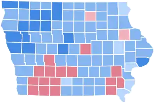 Iowa was won by incumbent President Franklin D. Roosevelt (D–New York), running with Vice President John Nance Garner, with 54.41% of the popular vote, against Governor Alf Landon (R–Kansas), running with Frank Knox, with 42.70% of the popular vote.[3][4] As of the 2020 presidential election, this is the last occasion when Sioux County, Lyon County and O'Brien County have voted for a Democratic Presidential candidate.[5][6]