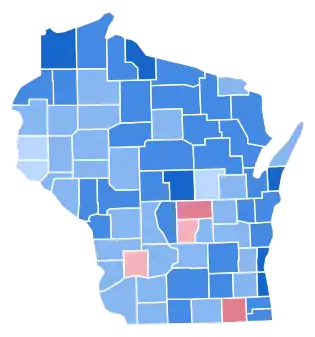 Late in September, polls showed Roosevelt narrowly leading Landon,[14] although a Gallup poll showed him increasing his lead in the Badger State.[15] Although no later polls were conducted, as it turned out Roosevelt won convincingly and held his two-to-one 1932 margin, carrying all but four counties. Vis-à-vis the 1932 election, Roosevelt gained significantly in the industrial areas of the northwest – in Douglas County he gained 24 percent on his 1932 figures – and in the urban southeast,[16] but lost in the rural areas lying between these two groups. A substantial vote for Lemke from isolationist German Catholics would pave the way for the traditional Democratic areas in the east to permanently leave the party with the following election, as this group could not accept the urban bias of the New Deal.