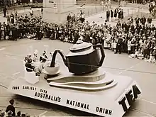 "Tea, Australia's national drink" (float) from Sesquicentenary Manufacturers Parade, Sydney, 1938