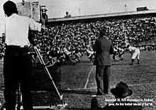 However, this game occurred before the 1939 New York World's Fair, which marked the beginning of regularly scheduled television broadcasts.[10] This, along with the fact that the game was broadcast to the Philco laboratories, likely means the game was used as a field test.