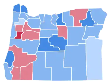 | Yamhill | 5,566 | 49.67% | 5,545 | 49.48% | 96 | 0.86% | 21 | 0.19% | 11,207 |