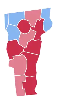 | Lamoille | 2,566 | 63.61% | 1,463 | 36.27% | 5 | 0.12% | 1,103 | 27.34% | 4,034 |