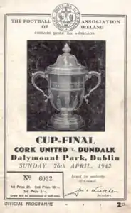 6. 'Nat' (27 April 1942). "Dundalk Beat Cork United and Win F.A.I. Cup". Evening Herald. Retrieved 9 November 2019.