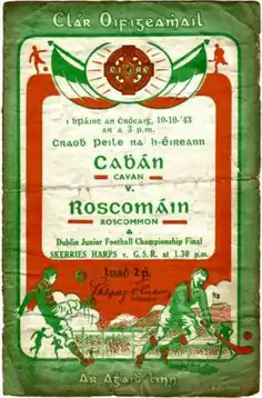 In 1943 [Mick Higgins] was left-half forward on the team that lost to Roscommon in the replayed All-Ireland final. Cavan had finished that game with fourteen players when Joe Stafford had been ordered off with fifteen minutes left.