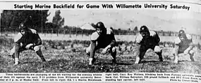 - Paul Haines (October 2, 1944). "Willamette Navycats Romp Over Marine Eleven 33-14 In High Scoring Contest". Herald and News. p. 2 – via Newspapers.com.