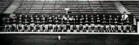 New Hampshire had not fielded a team in 1943, due to World War II.[4][3] In mid-September 1944, university administrators approved an "informal" team, limited to four games, with a roster consisting of 17-year-olds and returning veterans.[5] The program's most recent head coach, Charles M. Justice, had entered the Navy in April 1944.[6] Selected as his successor was Herbert Snow, a Springfield College graduate who had been the head coach at Wellesley High School in Massachusetts.[5] The team began practices in early October,[1] with only one player from their 1942 squad—Claude Henry, a reserve back who had returned to the university after serving in the Marine Corps.[1]