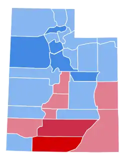 | Utah | 15,722 | 61.14% | 9,946 | 38.68% | 45 | 0.18% | 5,776 | 22.46% | 25,713 |