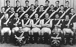 World War II commenced in Europe in September 1939, and had spread to the Pacific in December 1942. The Association had continued contesting the premiership in 1940 and 1941, but cancelled the 1942, 1943 and 1944 seasons when it became clear that the competition would distract from the war effort.[1] On 12 June 1944, the Association decided that it would resume the premiership in 1945, even though the Pacific War would ultimately not end until late 1945.[2]