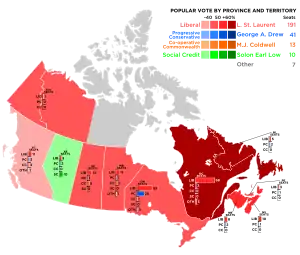 | Liberal | Louis St. Laurent | 258 | 117 | 191 | +63.2% | 2,874,813 | 49.15% | +9.37pp | |