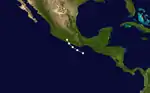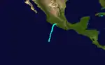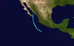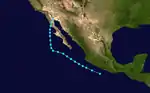 On August 24, a tropical storm was first observed south of Mexico. It paralleled the coastline, and moved northward into Baja California on the 28th. It dissipated the next day,[1] and caused moderate flooding in southern California.