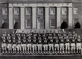 On the whole, Maryland returned a seasoned team that included 22 lettermen, and the United Press described the team as "bigger and bruisier than ever."[10] They were led by junior quarterback Jack Scarbath who gained significant experience in the split-T the previous season,[10] in which he started the first six games before suffering an injury.[12] He was backed up by a capable reservist in sophomore quarterback Bernie Faloney.[12] (In 1952, Scarbath was the Heisman Trophy runner-up,[13] and the following year, Faloney finished fourth in the voting.[14])