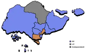 By winning six of the nine constituency seats, the Progressive Party became the first and only party to win a two-thirds majority prior to 1959 and the only party other than the People's Action Party to do so.