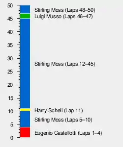- Car #22: Juan Manuel Fangio (30 laps) and Eugenio Castellotti (16 laps).