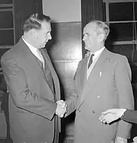 The 1956 mayoral election was conducted amidst a selection controversy by the right-leaning Citizens' Association. Under the impression that incumbent mayor Robert Macalister was not intending to seek a third term as Mayor, Ernest Toop applied to gain nomination as the official Citizens' candidacy. As Toop was the only applicant he was successful. However, Macalister had intended to run for mayor again and assumed he, as incumbent, would gain automatic nomination. Undeterred, Macalister ran for mayor again as an Independent which split the Citizens' vote enabling Labour's Frank Kitts to win the mayoralty.[1] Kitts became Wellington's first Labour Mayor in 46 years following David McLaren's defeat in 1913.[2]