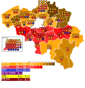 | Belgian Socialist Party | 1,897,646 | 35.79 | 80 | –2 | |||||