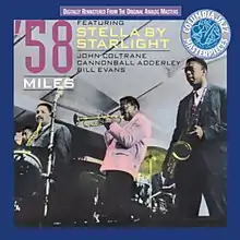 The sessions for tracks on the album in mid-1958, along with the Milestones sessions from earlier that year, were seen by many music writers as elemental in Miles Davis' transition from bebop to the modal style of jazz and were viewed as precursors to his best-known work, Kind of Blue.[3][5] Following audio engineering and digital restoration by engineer Larry Keyes at Sony Music New York Studio, the album was reissued on compact disc in 1991 as part of Columbia's Jazz Masterpieces Series.[6] For later reissues, the album was retitled as '58 Sessions Featuring Stella by Starlight or '58 Miles Featuring Stella by Starlight.[6][7] The complete 1958 sessions for Columbia were issued on the box set The Complete Columbia Recordings of Miles Davis with John Coltrane, and Jazz at the Plaza was reissued in 2001.[8] The first four tracks were also released on a bonus disc of the 50 Anniversary Collector's Edition of Kind of Blue.