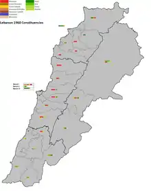 Map depicting constituencies for 1960 Lebanese elections