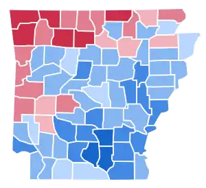 Arkansas was won by Senator John F. Kennedy (D–Massachusetts), running with Senator Lyndon B. Johnson, with 50.19% of the popular vote against incumbent Vice President Richard Nixon (R–California), running with United States Ambassador to the United Nations Henry Cabot Lodge, Jr., with 43.06% of the popular vote. National States' Rights Party candidate Orval Faubus performed best in his home state of Arkansas, earning 6.76% of the vote.[3][4] Nixon was however the first-ever Republican victor in the five northeastern counties of Clay, Craighead, Fulton, Randolph and Sharp due to powerful "Bible Belt" anti-Catholicism.[5] In 1928 this was muted by the presence of Arkansas Senator Joseph T. Robinson as Al Smith's running mate, and perhaps by perception of Hoover’s ineffectiveness at relieving the great 1927 flood.[6] Nixon was also the first Republican victor in Marion County since Ulysses S. Grant in 1868.[5]