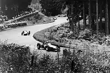 The 1962 German Grand Prix was a Formula One motor race held at the Nürburgring on 5 August 1962. It was race 6 of 9 in both the 1962 World Championship of Drivers and the 1962 International Cup for Formula One Manufacturers. The 15-lap race was won by BRM driver Graham Hill after he started from second position. John Surtees finished second for the Lola team and Porsche driver Dan Gurney came in third. The race was notable for having six different constructors taking the first six positions.[1]