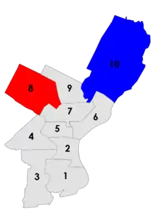 The one surprise result was in the 8th district as Smullen picked up the seat for the Republicans in what the Philadelphia Daily News called "a major upset."[12] The results meant that the Democratic majority on the council was reduced to 13 to 3.[12] All three races showed a roughly five percentage point increase in the Republican vote, in line with the increases in row office elections the previous year.