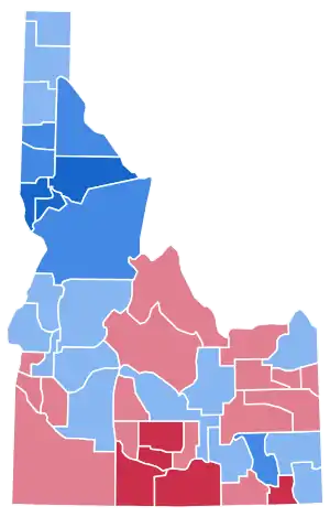 | Twin Falls | 7,638 | 39.87% | 11,518 | 60.13% | -3,880 | -20.25% | 19,156 |