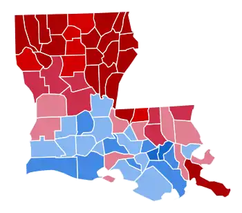 | Iberville | 3,432 | 43.57% | 4,445 | 56.43% | -1,013 | -12.86% | 7,877 |