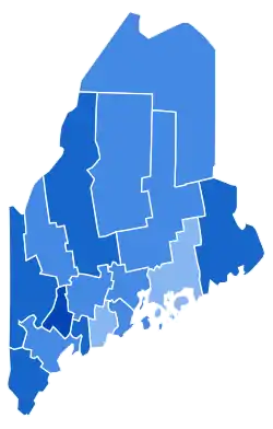 He was the first Democrat to carry Somerset County since Martin Van Buren in 1836,[8] the first since Pierce to carry the counties of Franklin, Oxford, Penobscot and Piscataquis and the first since Winfield S. Hancock in 1880 to carry Aroostook County.[9] Populous Cumberland County, along with Lincoln County, had last voted Democratic for Woodrow Wilson in 1912, while the counties of Hancock, Knox and Waldo had last supported a Democrat when giving Wilson a plurality in 1916.[9]