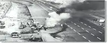 Fireball Roberts was involved in a crash while trying to avoid Junior Johnson and Ned Jarrett's crash on lap 7.[2][3][6] Roberts was sent to Charlotte hospital.[6] While he was not seriously injured by the crash itself, Roberts was trapped when his ankle became pinned under the dashboard and caught by either the clutch or brake pedal.[6] The death would have occurred at the speedway if Jarrett hadn't pulled Roberts out.[6] He died on July 2 of that year; leaving behind a wife (Doris Roberts) and a young daughter (Pamela Jane Roberts Trivette).[6] Jarrett would go up to Roberts, and Roberts, who was uninjured and conscious, told Jarrett "Oh my God, Ned, help me! I'm on fire!" after being caught on fire because of the crash.[7]
