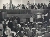 Candidates opposed to the reforms advocated by the left were financed by the Brazilian Institute for Democratic Action, with foreign financial involvement, in the 1962 elections.[12] Members of the UDN and PSD participated in the conspiracies that would lead to the coup of 1964.[13] The request for a state of siege in November 1963 was rejected by the left and right and defeated by the parliamentarians, demonstrating the president's isolation.[14] In the last moments of his government, as in the Central Rally, the president, as desired by the left, abandoned conciliation and sought to mobilize popular pressure to get the reforms from Congress, thus alarming conservative congressmen.[15][16]