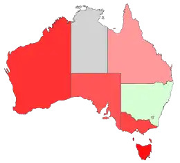 | New South Wales | 2,315,828 | 2,166,507 | 1,087,694 | 51.01 | 1,044,458 | 48.99 | 34,355 | |