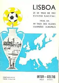 The 1967 European Cup Final was a football match between Italian team Inter Milan and Scottish team Celtic. It took place at the Estádio Nacional in Lisbon, Portugal on 25 May 1967 in front of a crowd of 45,000. It was the final of the 1966–67 European Cup, the premier club competition in Europe. The match was Celtic's first European final and Inter's third; they had won the tournament in two of the previous three years.