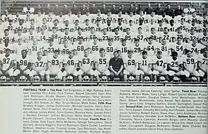 The team's offensive leaders were quarterback Steve Livas with 705 passing yards, running back Dave Jackson with 465 rushing yards, and wide receiver Doug Dieken with 486 receiving yards.[2] Dieken was selected as the team's most valuable player.[3]