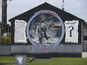 A loyalist mural in Belfast commemorating the 1969 riots