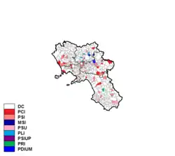 Christian Democracy was by far the largest party, gaining almost twice the share of vote of the Italian Communist Party, which came second. After the election, Christian Democrat Carlo Leone was elected President of the Region, but as soon as in 1971 he was replaced by fellow Christian Democrat Nicola Mancino. In 1972 Mancino was replaced by Alberto Servidio, to whom Vittorio Cascetta succeeded in 1973.
