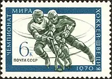 For the eighth straight year, the Soviet Union won the world championship. Originally the tournament was scheduled to be held in Montreal and Winnipeg in Canada.[1] However, after a dispute over allowing professional players in international tournaments, the IIHF awarded the championships to other cities. The Canadian team withdrew from competing in international hockey. They would not return to international play until 1977.[2] This tournament was also the first one to make helmets mandatory for all skaters.[1]
