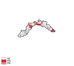 Christian Democracy was the largest party and, narrowly ahead of the Italian Communist Party. After the election, Christian Democrat Gianni Dagnino formed a government comprising the Italian Socialist Party, the Unitary Socialist Party and the Italian Republican Party (organic centre-left).