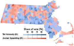 This was the last election in which Ted Kennedy lost any Massachusetts county. Spaulding carried Barnstable, Dukes, Franklin, and Nantucket Counties.