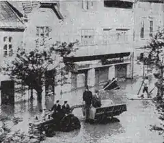 ![]() Flood victims attempting to move about in Alba Iulia, May 1970 | |