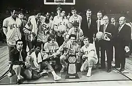The 1971–72 UCLA Bruins men's basketball team won the National Collegiate Championship on March 25, 1972, in the Los Angeles Sports Arena with an 81–76 victory over Florida State.[2] It was the sixth consecutive championship (and eighth in nine years) under John Wooden, in his 25th year as head coach at UCLA. This was the final year that the national championship game was played on Saturday.[3]
