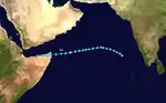 A tropical cyclone moved through the Arabian Sea near the end of October.