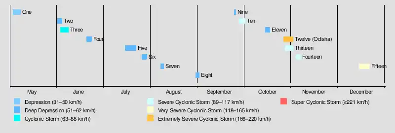 This cyclone was formed on September 27 and peaked as a Category-1 equivalent storm. On September 30, the storm made landfall over Sunderbans and dissipated over the state of Bihar by the next day. 60 people were killed due to the storm.