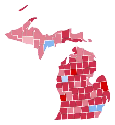 Michigan was won by incumbent President Richard Nixon (R–California), with 56.20% of the popular vote, against George McGovern (D–South Dakota), with 41.81% of the popular vote, a victory margin of 14.4%.[4][5] John G. Schmitz was the only other candidate on the ballot, and, as the candidate for the American Independent Party, he received over 63,000 votes. Despite voting for a Republican presidential candidate for the first time since 1956, this result nonetheless made Michigan 8.8% more Democratic than the nation-at-large.