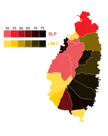 | Saint Lucia Labour Party | 14,554 | 44.65 | 7 | +4 | |