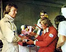 The 1975 Austrian Grand Prix was a Formula One motor race held at Österreichring on 17 August 1975. It was race 12 of 14 in both the 1975 World Championship of Drivers and the 1975 International Cup for Formula One Manufacturers.[4] It was the eighth Austrian Grand Prix and the sixth to be held at the Österreichring. It was held over 29 of the scheduled 54 laps of the six kilometre circuit for a race distance of 171 kilometres. The race was shortened by heavy rain, meaning that only half points were awarded. The weekend itself was marred by the deaths of Mark Donohue and a track marshal in a practice crash.
